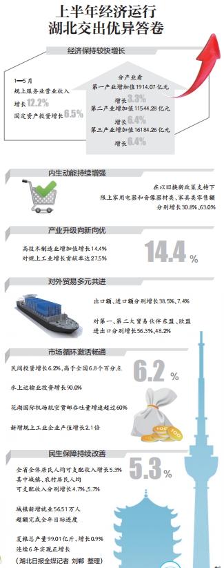 本年上半年,湖北以亮眼成就彰显经济大省实力——实现出产总值29642。61亿元,同比增加6。2%,经济增速高于全国0。9个百分点。看投资,本年上半年,全省共有施工项目19250个,增加7。1%;项目投资(扣除房地产开辟投资)增加9。8%,高于全国3。2个百分点。制制业投资增加12。5%,高于全国5。0个百分点。看消费,上半年,全省社会消费品零售总额13073。93亿元,同比增加6。9%,高于全国1。9个百分点。上半年,全省规上工业添加值增加7。9%,高于全国1。5个百分点;1月—5月,规上工业企业利润增加12。0%,高于全国13。1个百分点。区域联动协同共进。“金三角”大空间协同成长,带动市州竞进提速。17个市州中,P、工业、投资增速高于全省平均程度的别离有14个、14个、15个。以“扩”加力,以“立”夯基,以“破”突围——三个动词,取高质量成长的内涵不约而合,既意味着根底的安定,又包含着朝上进步的姿势,展示出湖北高质量成长的强劲动能。以新需求牵引新供给,以新供给创制新需求。上半年,湖北举办超2200场特色勾当,让消费市场月月有新意,正在全国敏捷出圈。出格是本年以旧换新政策实施以来,截至6月20日,全省汽车以旧换新补助申请近16万份,带动新车发卖额近240亿元,换新车辆中新能源乘用车占比达56%。京东MALL、山姆、美的等巨头持续沉仓湖北。湖北人形机械人军团展示出“飞一般”的进化速度。第三届链博会上,光谷东智新研发的“光子”系列、格蓝若新研发的M3等20款“湖北制”人形机械人集体表态,这距离湖北发布首批10款人形机械人才过去短短5个月。从尝试室到使用场景的加快度,背后是湖北日益完美的创重生态支持。湖北新能源汽车财产增势喜人。本年上半年,全省新能源汽车产量冲破50万辆,同比增加29。3%;“湖北制”高端新能源汽车品牌岚图汽车累计销量达56128辆,同比增加85%。正在武汉车谷,跟着东软集团武汉软件园、采埃孚武汉研发核心等一批标记性项目接踵落地,一个国际化创重生态正正在构成。投运三年来,花湖国际机场航路收集迅猛扩张,上半年,其航空货邮吞吐量增速跨越60%。中国(鄂州)跨境电子商务分析试验区正式启动,27家国表里出名电商企业将正在此结构跨境电商全财产链;沃尔玛全球电商武汉办公室正式启用,成为其正在中国设立的第六个办公室。湖北缘何能怯挑经济大梁?本年以来,湖北推出一系列务实行动,并正在上半年经济运转中交出优异答卷,这些行动成为其怯挑大梁的支持。湖北打制营商“五大生态”,实施“加速平易近营经济高质量成长20条”,持续为运营从体降成本,成长生态持续优化,带动平易近间投资增加6。2%,高于全国6。8个百分点。10台“湖北制”人形机械人正在湖北“新春第一会”集体表态、设立100亿元人形机械人财产投资母基金,湖北聚焦人工智能、人形机械人等前沿范畴,通过政策支撑取资本倾斜,鞭策财产向高端化、智能化转型。合适前提的师生创业贷款赐与现实利率50%贴息,大学生创业搀扶项目赐与不跨越30万元“青创贷”支撑,湖北鼎力支撑创业就业,大规模推进以乡情为纽带的楚商回籍、外出务工人员返乡创业、校友回归取高校师生立异创业。企业专利证书变身信贷通行证,贸易价值信用评级让深山鱼子酱获得金融“甘雨”,“两农”信用贷试点让鄂西山村养殖企业送来“及时雨”……湖北立异推出“学问价值信用贷”“贸易价值信用贷”“两农信用贷”三大政策性金融东西,曲击中小微企业融资痛点。耽误婚假至15天,全面奉行育儿补助间接发放至职工本人,对求职的高校结业生,湖北建立了“短租驿坐过渡、长租社区安居、购房补支撑”全周期梯度保障系统……通过生育敌对、就业保障等平易近生政策赋能,构成经济成长取平易近生改善的互动款式。湖北用一条上扬曲线,为“经济大省怯挑大梁”写下新注脚。(肖丽琼、刘宇、张楚熙、赵尹、范载岳)。